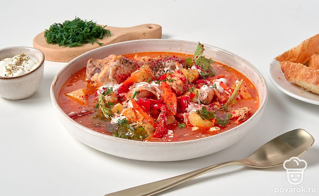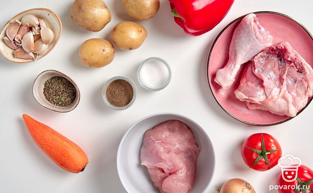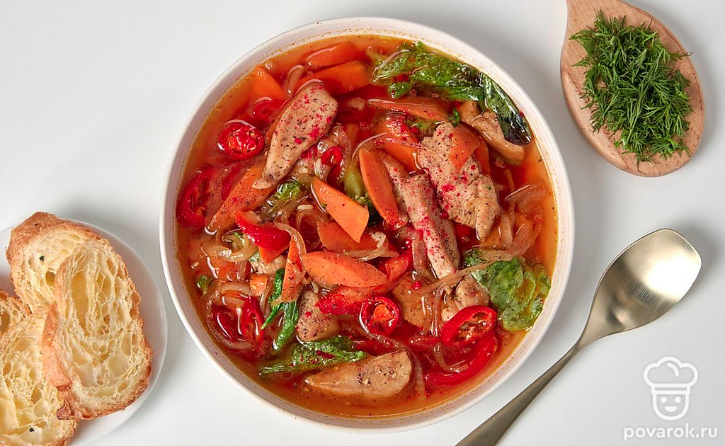Густой венгерский суп-гуляш — это отличный вариант для обеда или ужина зимой. Он очень аппетитно выглядит, быстро согревает и отлично насыщает. В этом рецепте в качестве мясной основы для блюда используются филе индейки и куриное бедро. Наваристый суп будет готов меньше, чем за 1 час, поэтому его можно приготовить даже в будни после работы.
