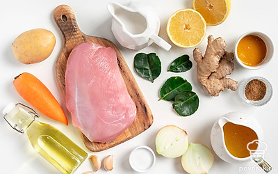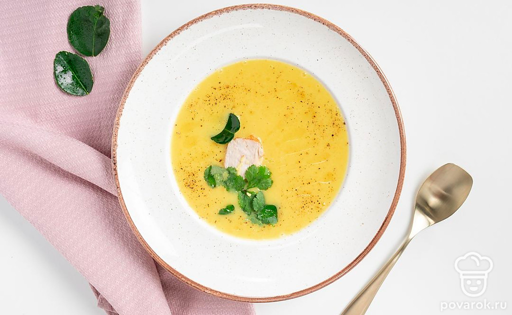 Острый карри-суп с филе индейки и листьями каффир-лайма