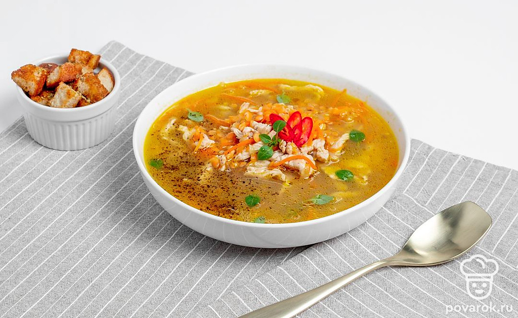 Чечевица — высокобелковое бобовое растение, обладающее множеством полезных свойств. Она полезна для кишечника и является отличным источником клетчатки, витаминов и минералов. Регулярное употребление чечевицы поможет и побороть хроническую усталость, и снизить вес. Немаловажно, что ее можно вводить в рацион при сахарном диабете. А значит суп с этой крупой и диетическим мясом индейки — самый верный выбор для сторонников ЗОЖ и всех, кто тщательно следит за питанием.