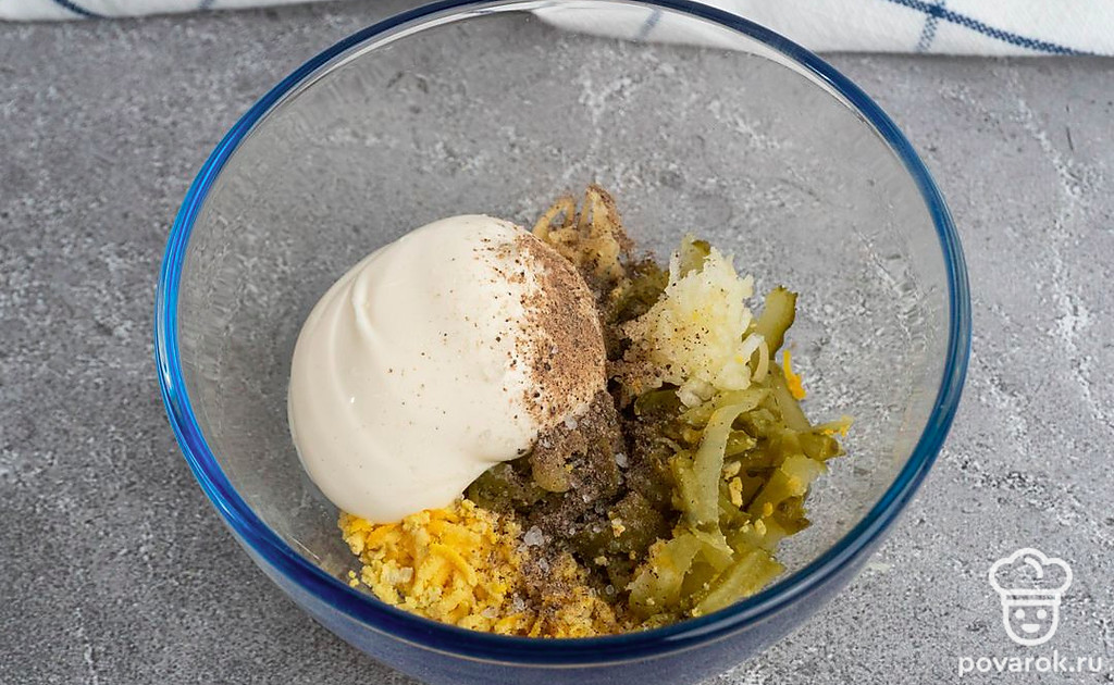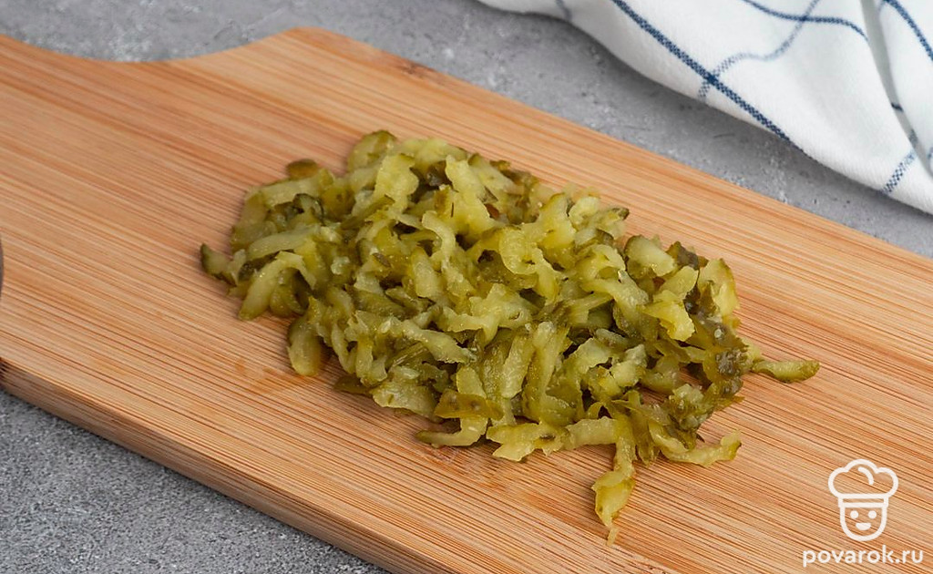 Если вы любитель пикантных и острых закусок, но предпочитаете среднюю остроту, эта закуска просто создана для вас. Немного чеснока, майонеза и соленых огурчиков придают ей приятный легкий привкус, слегка обжигающий язык, но не опаляющий горло. Вкусно, приятно, отлично сочетается с теплым мягким гарниром, вроде картофельного пюре, отварного риса или сочных овощей. Хорошее дополнение к любому праздничному столу или семейному вечеру.