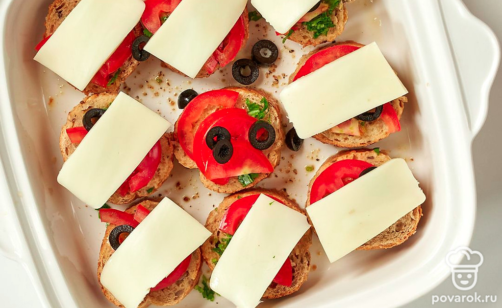 Багет с сулугуни — яркая и аппетитная закуска на праздничный стол. Это горячий бутерброд, который готовится из французского багета с добавлением помидоров, зелени и маслин. Сулугуни придает блюду солоноватый вкус с легкой кислинкой. Настоящий сулугуни на ощупь упругий и мягкий, а если его разломить и немного нажать — из свежего сыра должно сочиться молоко. Точки, крапинки, испарины любого оттенка — признак старого и испорченного продукта. От его покупки лучше отказаться.