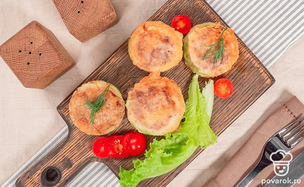 Среди всех овощных закусок особо выделяются закуски из кабачков. Мало того, что кабачки полезны для пищеварения, так и еще в процессе приготовления они становятся очень нежными и мягкими. Из простых кабачков и мясного фарша можно приготовить на сковороде изысканную, тающую во рту закуску с неповторимым вкусом. Добавьте в начинку тертый твердый сыр, и жареные фаршированные кабачки долго на столе не задержатся.