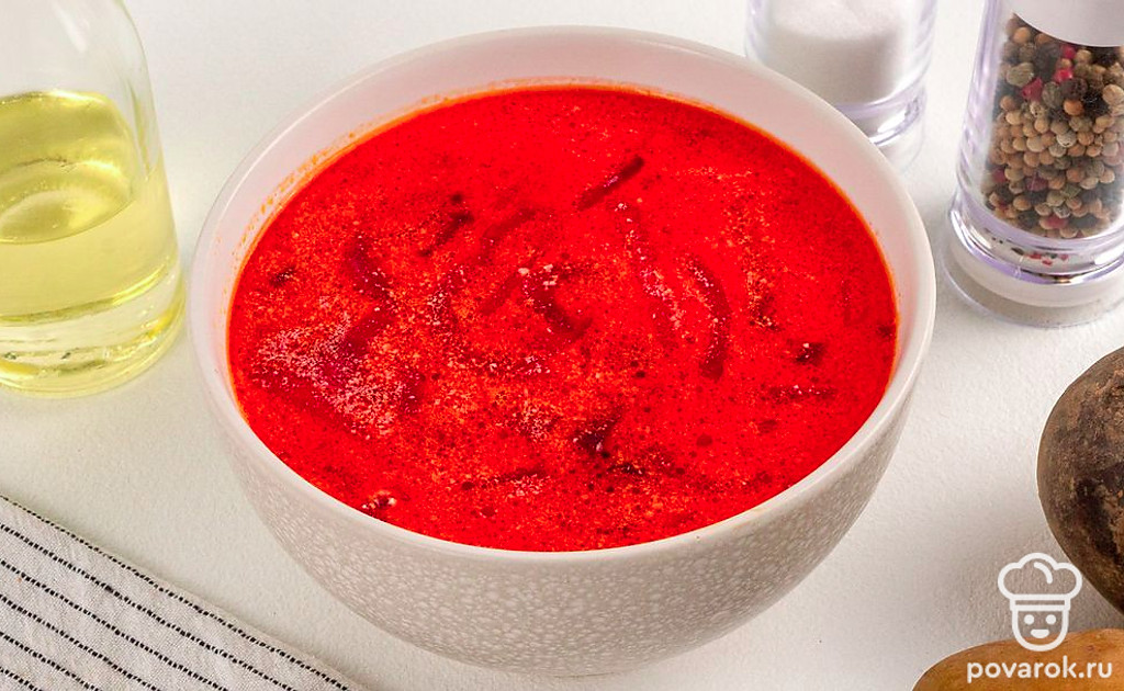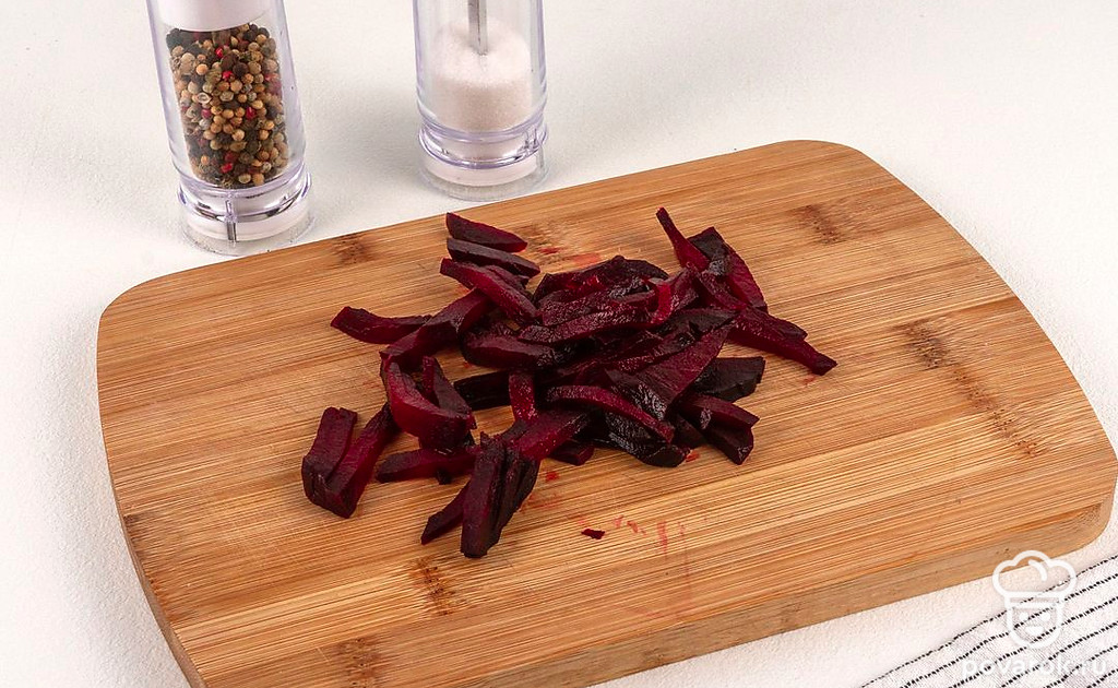 Отварную свеклу нарежьте тонкой соломкой. Она понадобится в самом конце приготовления свекольника.