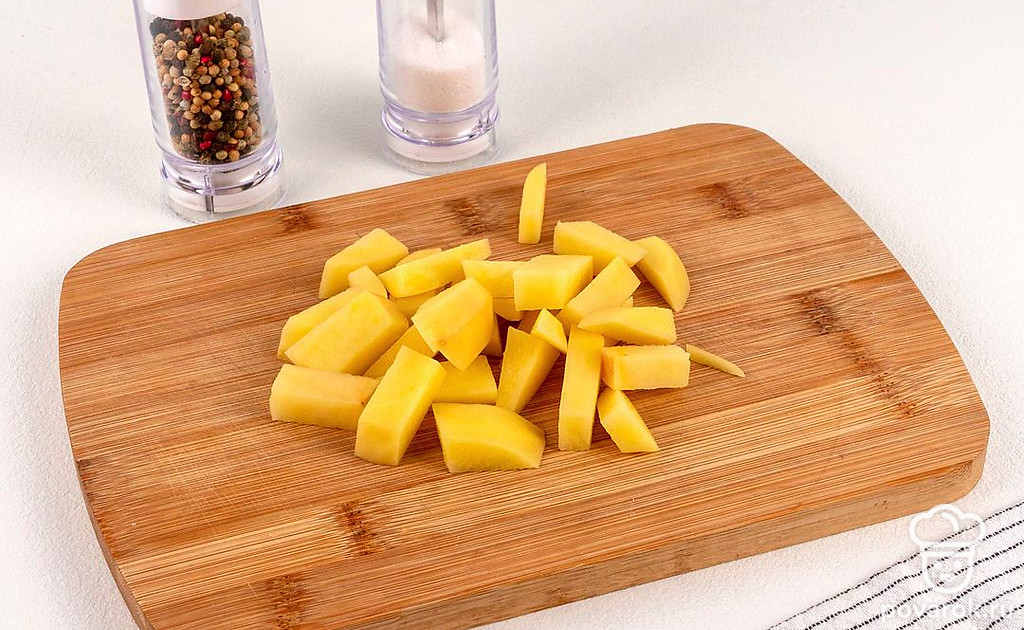 Картофель нарежьте небольшими брусочками.