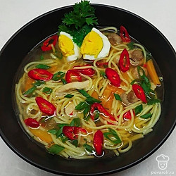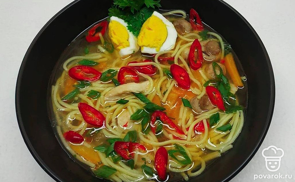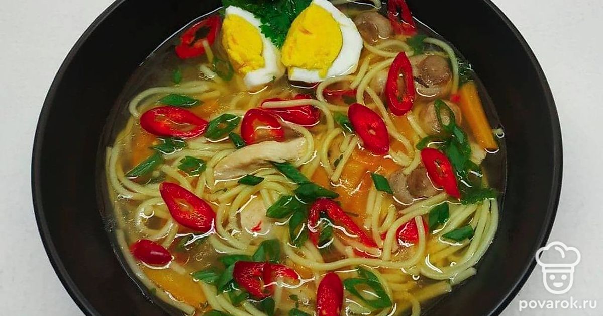 Удон — это традиционный азиатский куриный суп с одноименной лапшой и перцем чили. Такой суп точно понравится всем, кто его попробует, ведь он не только красиво ярко выглядит, но и отличается прекрасными вкусовыми качествами. Нежное слегка обжаренное куриное филе с плотной лапшой и припущенными овощами дополняется пикантностью перца чили и создает абсолютно новое интересное сочетание.