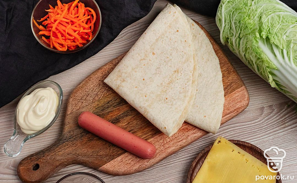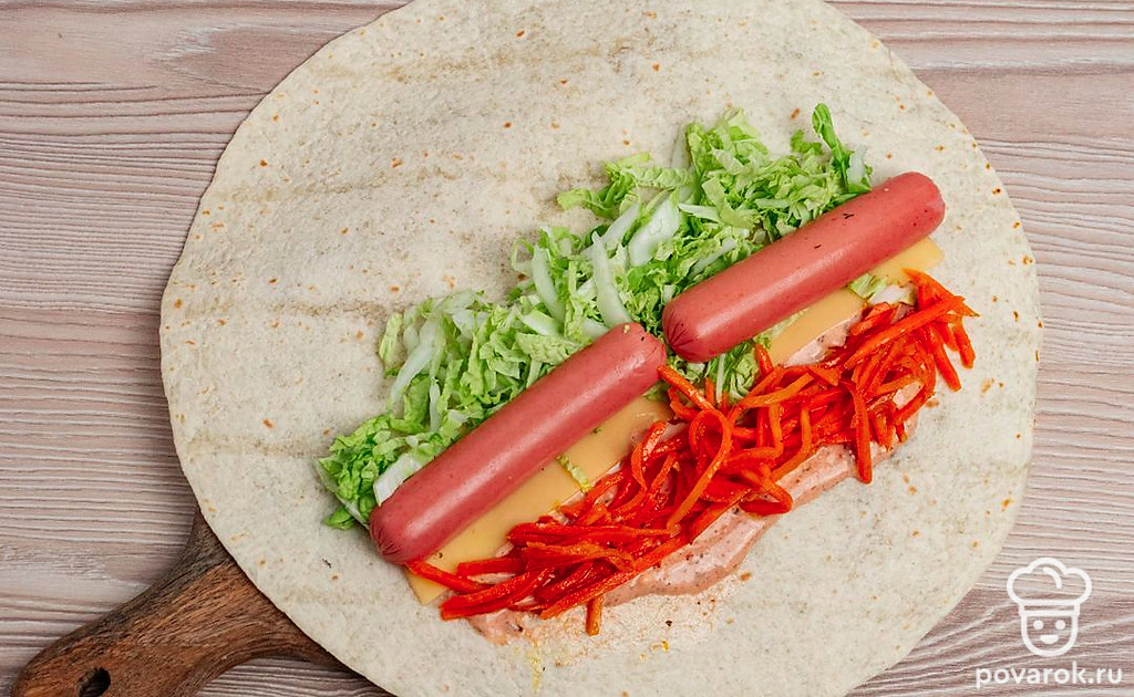 Это быстрое в приготовлении блюдо станет отличным перекусом для всей семьи или у вас совсем нет времени на приготовление. Для блюда потребуются простые и доступные ингредиенты, а получится все невероятно вкусно и сочно. Это необычный вариант хот-дога, так как блюдо готовится в лаваше и на сковороде. Сочетание сочных сосисок, хрустящего лаваша и пикантный корейской морковки понравится всем. Обязательно попробуйте!