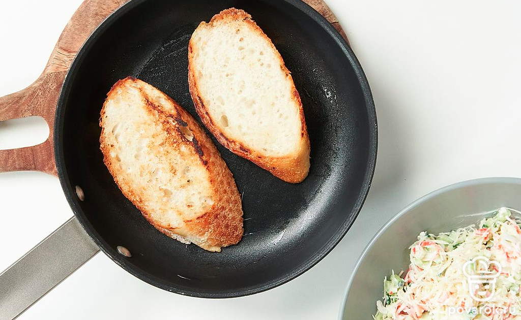 Ломтики багета можно также подсушить в тостере.
