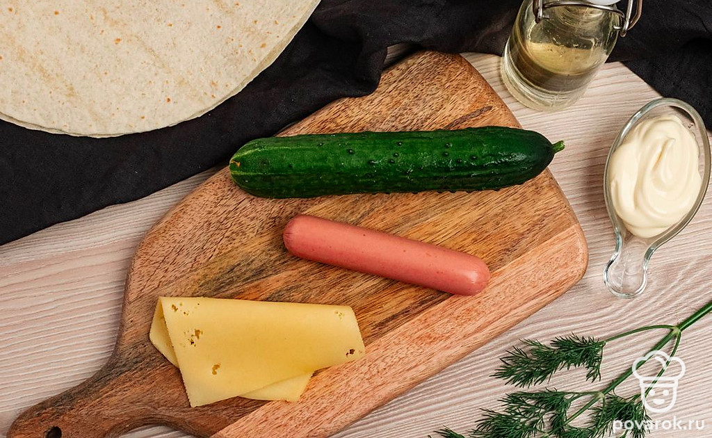 Сосиска в лаваше с сыром и огурчиком