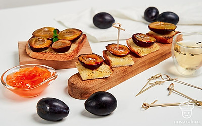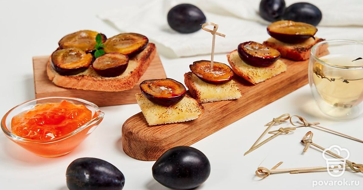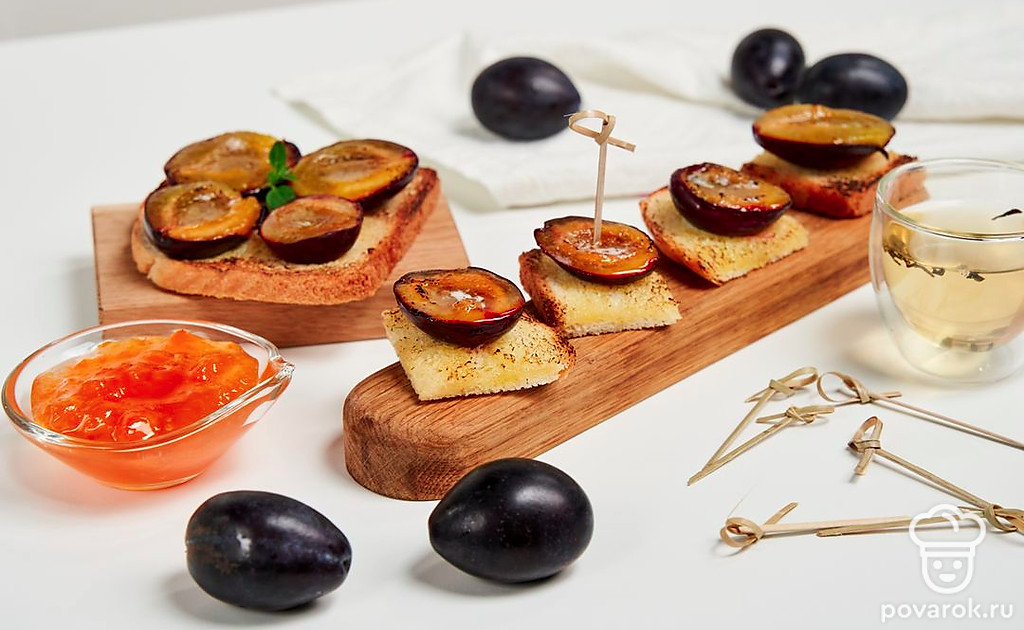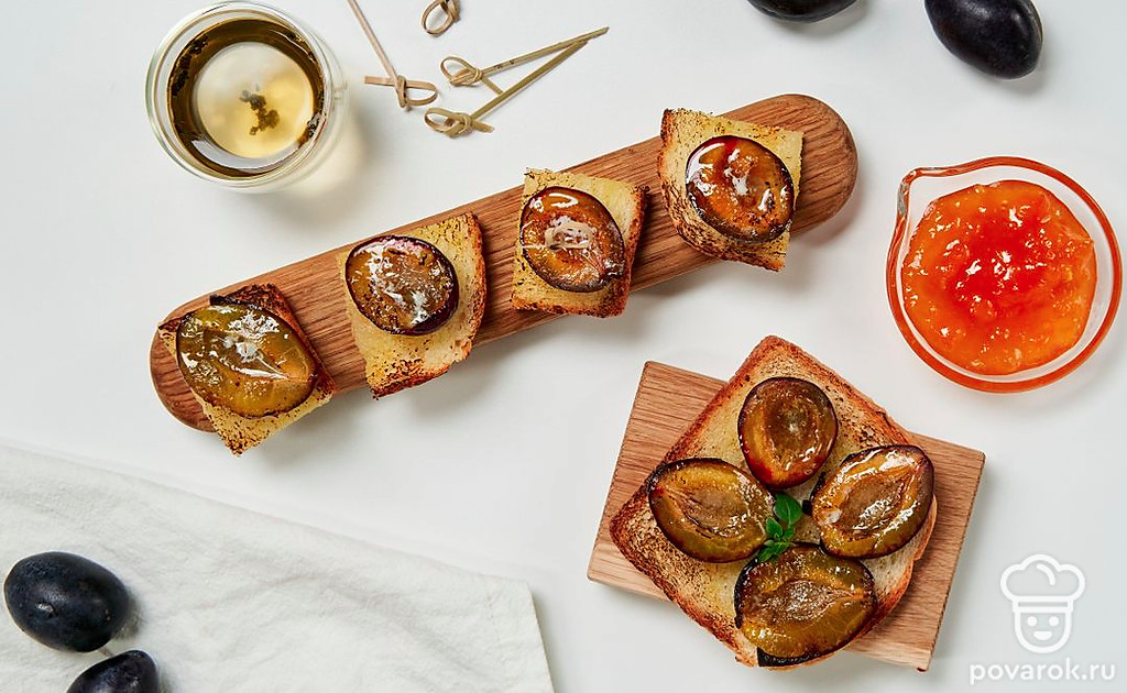 Слива — не просто ароматный фрукт, возбуждающий аппетит сладким вкусом с приятной кислинкой. Она богата поливитаминами, клетчаткой, кальцием, железом, фосфором и магнием. Слива — фрукт-антиоксидант. Наиболее сильной антиокислительной способностью обладают темные сорта. Для тостов со сливами выбирайте зрелые и сочные плоды. Не всегда самые крупные экземпляры — сладкие. У спелой сливы нет плодоножки или она сухая. Зеленая же говорит о том, что фрукты собрали слишком рано, они будут кислыми.