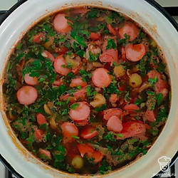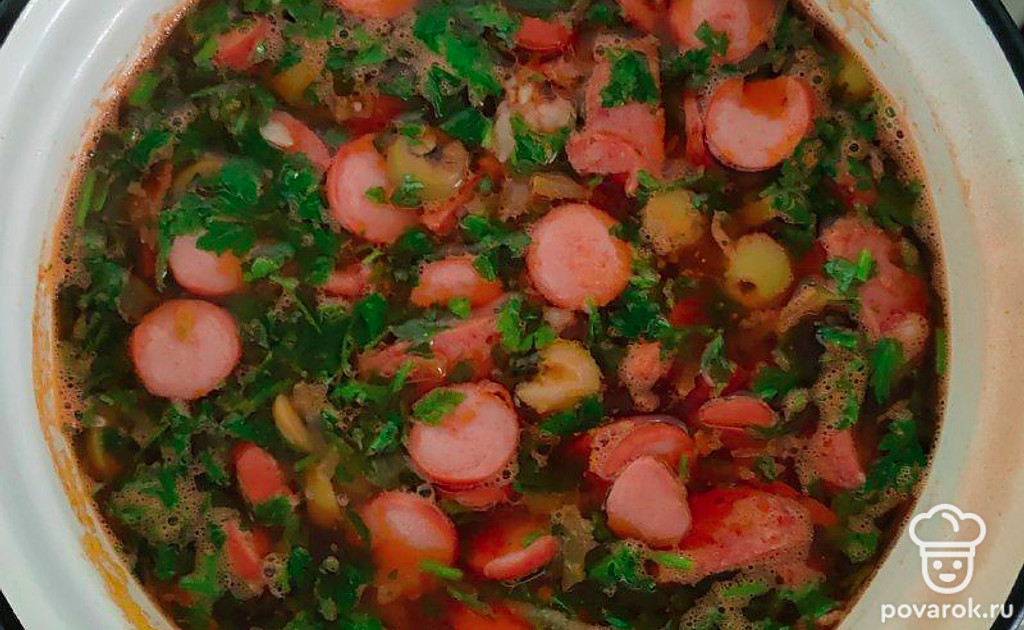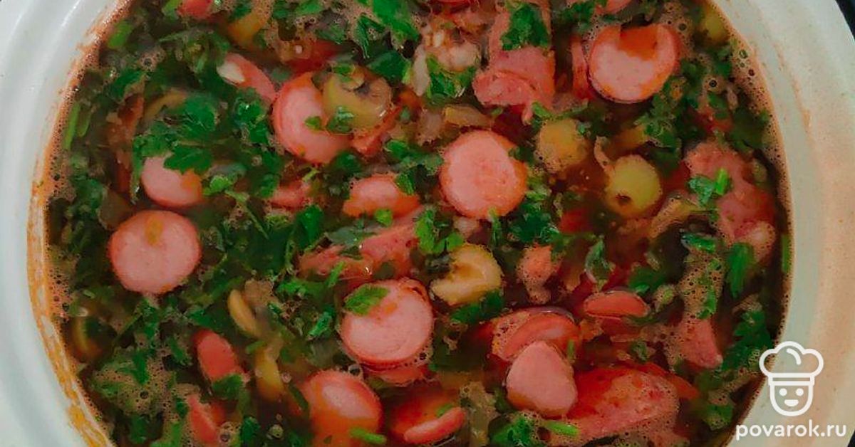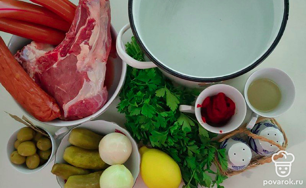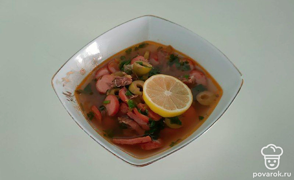 Несмотря на то, что в разных российских регионах есть свой рецепт солянки, неизменными в ней остаются густой наваристый бульон, огурцы, оливки, томатная паста. В представленном варианте к основным ингредиентам добавляется копченые колбасы. Все остальное довершает «кулинарная химия». Ингредиенты солянки перемешиваются таким образом, что она, как ни крути, все равно остается русским очень вкусным блюдом.