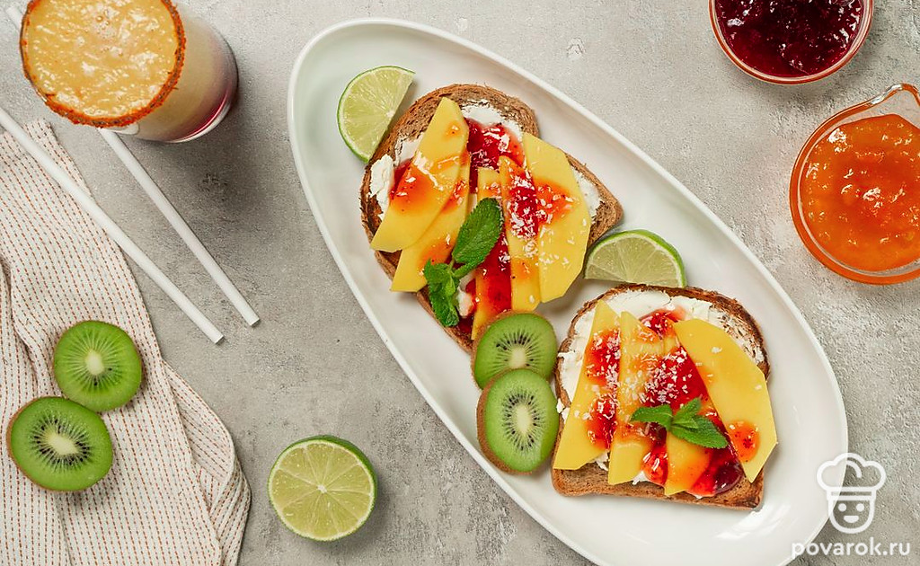 Тост с манго — яркое, сочное и полезное начало утра. Прародителем манго является провинция Асаам в Индии, которая считает его «королем фруктов» более 8 тысяч лет. Древние индусы называли фрукт источником жизненных сил. Яркое и сочное манго содержит много витаминов, помогает бороться со стрессами и снимает нервное напряжение. Регулярное употребление плодов повышает иммунитет и укрепляет сосуды. Существует около 70 разновидностей фрукта. Самым сладким и сочным считается тайское манго.