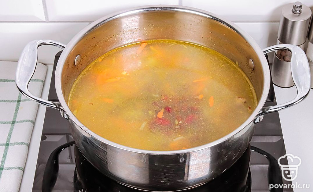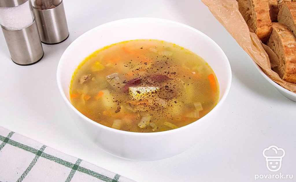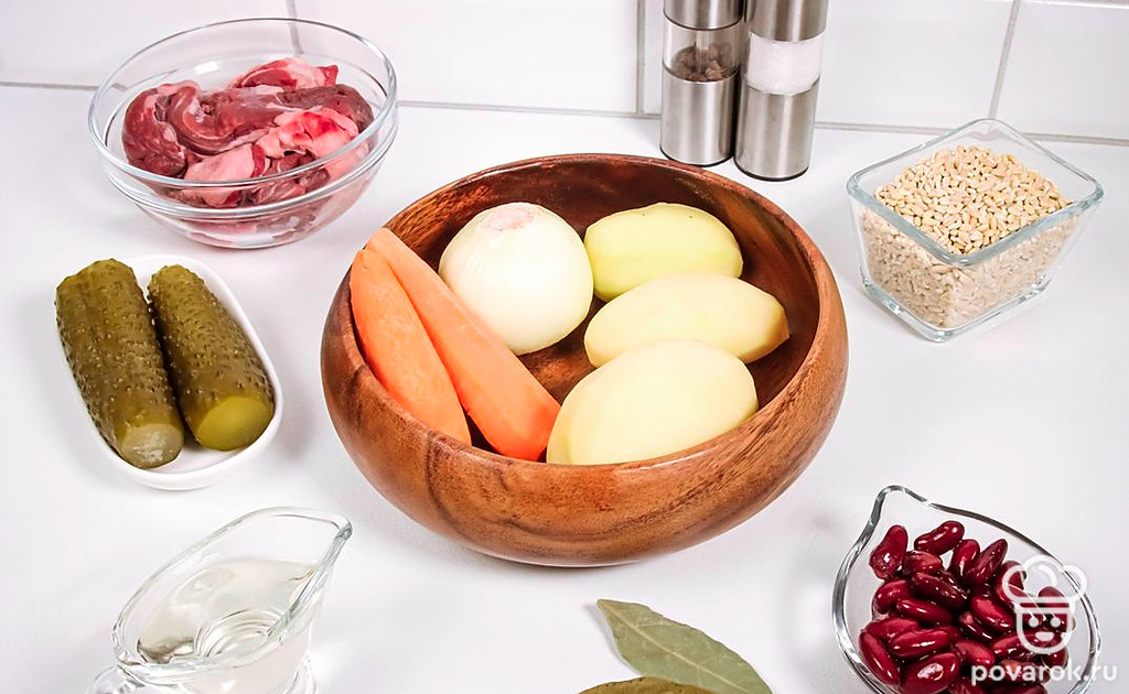 Рассольник — русское национальное блюдо. Чаще всего этот суп готовят на основе говядины, а также добавляют перловку. Говядину можно заменить другим мясом или сварить суп без него, потому что блюдо все равно получится сытным. Особенность рассольника — добавление соленого огурца и огуречного рассола. С добавлением фасоли суп станет еще более питательным.