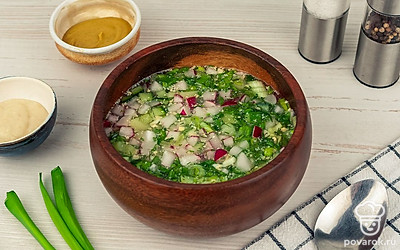 Бывает так, что во время летней жары почти нет аппетита — получается съесть только что-нибудь легкое, нежирное и прохладительное. Окрошка на минеральной воде без мяса как раз подходит по всем параметрам: освежает, не содержит лишних калорий и проста в приготовлении.
