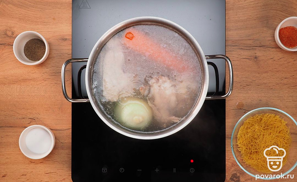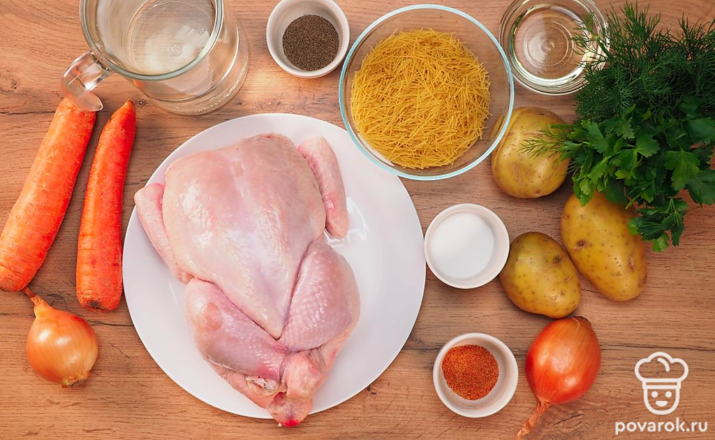 Куриный бульон с вермишелью содержит много полезных веществ и витаминов. Если регулярно употреблять в пищу такой суп, повышается иммунитет и улучшается работа сердца. Также блюдо оказывает благотворное влияние на нервную систему. Приготовить его не сложно. По нашему рецепту суп варится с картошкой, но при желании ее можно не добавлять.