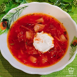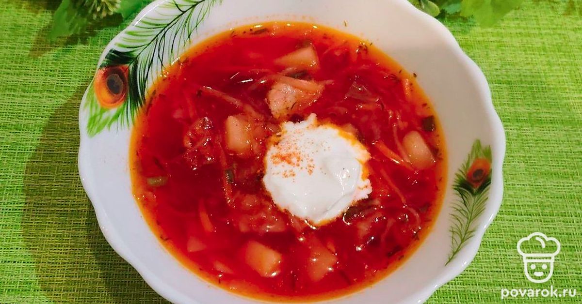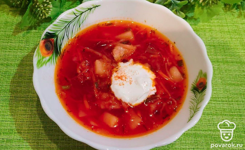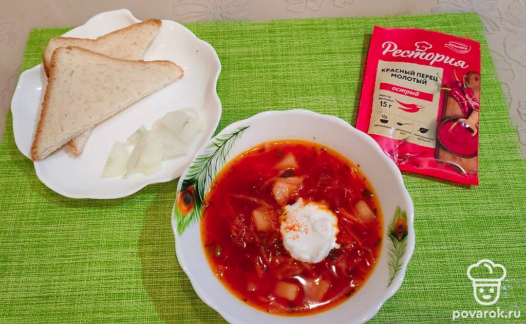 Подавайте щи со сметаной, луком и хлебом. Можно добавить красный молотый перец.