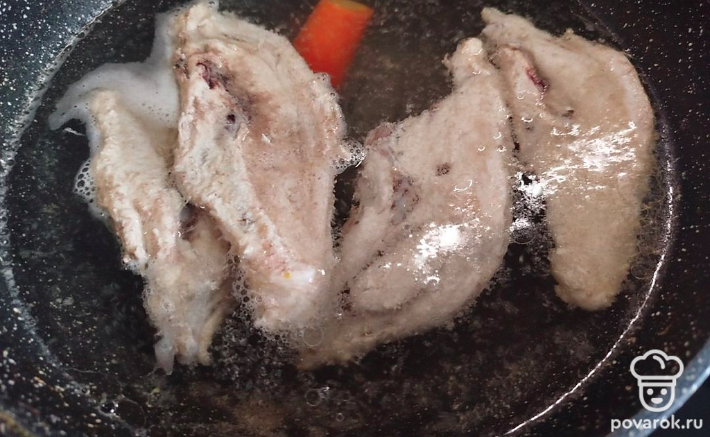 Куриные хребты промойте. Залейте холодной водой и сварите из них бульон.