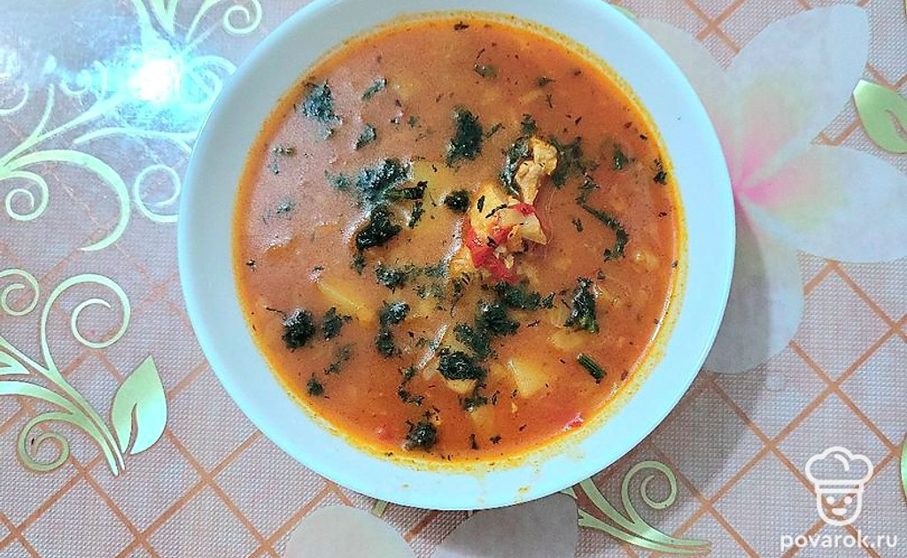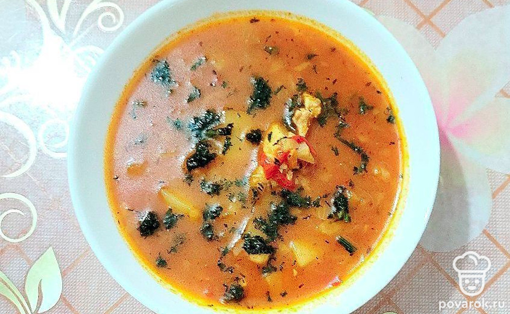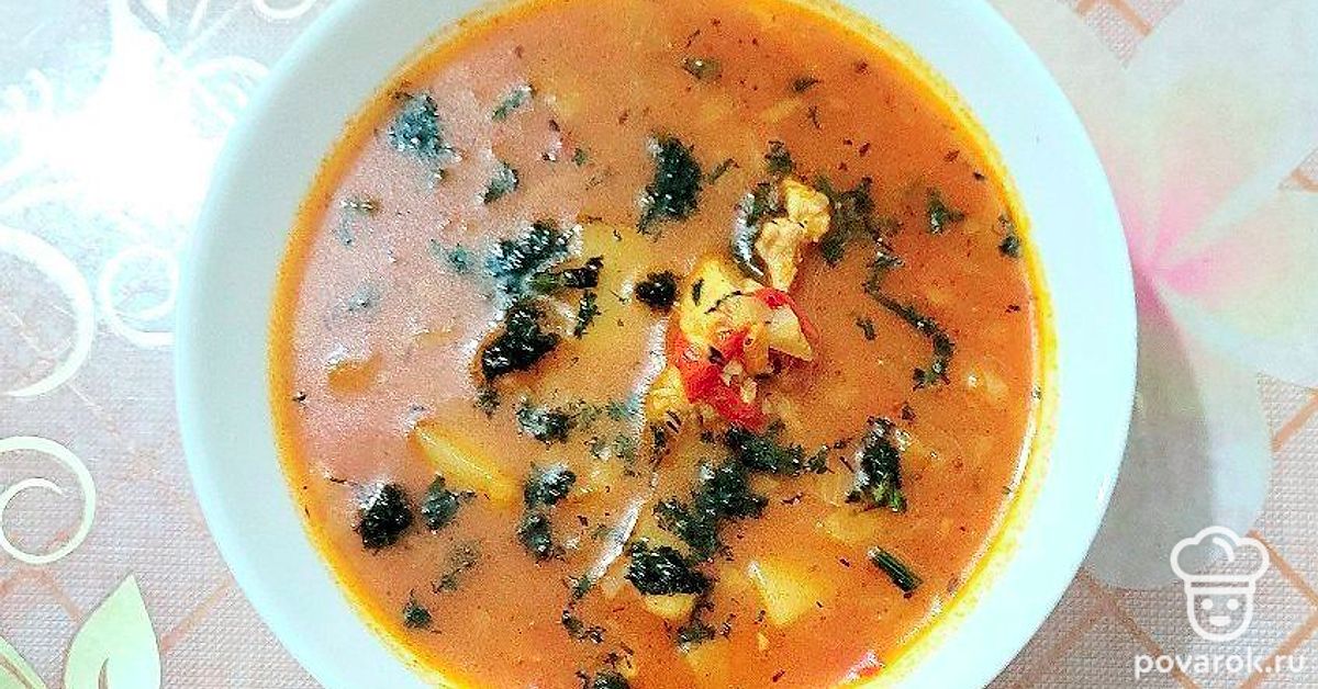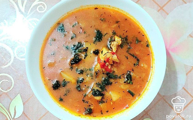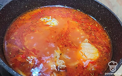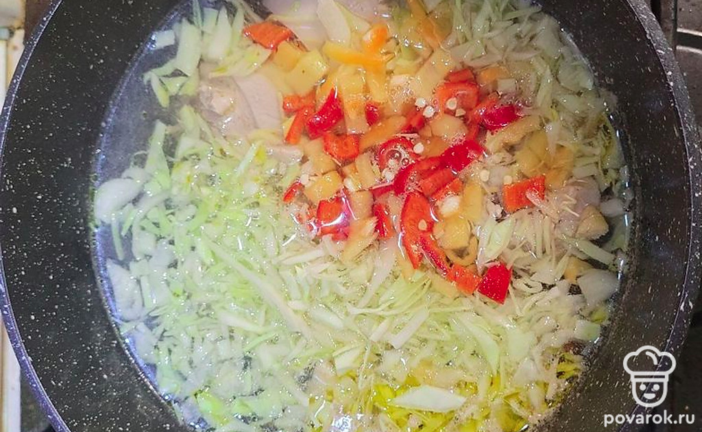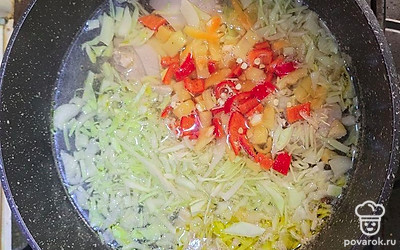 Овощную зажарку добавьте в кастрюлю. Варите все вместе еще 5 минут.