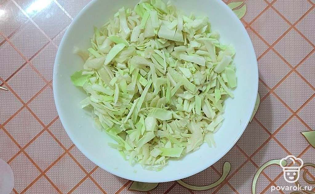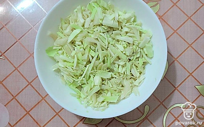 В кастрюлю выложите капусту и нарезанный небольшими кусочками болгарский перец.