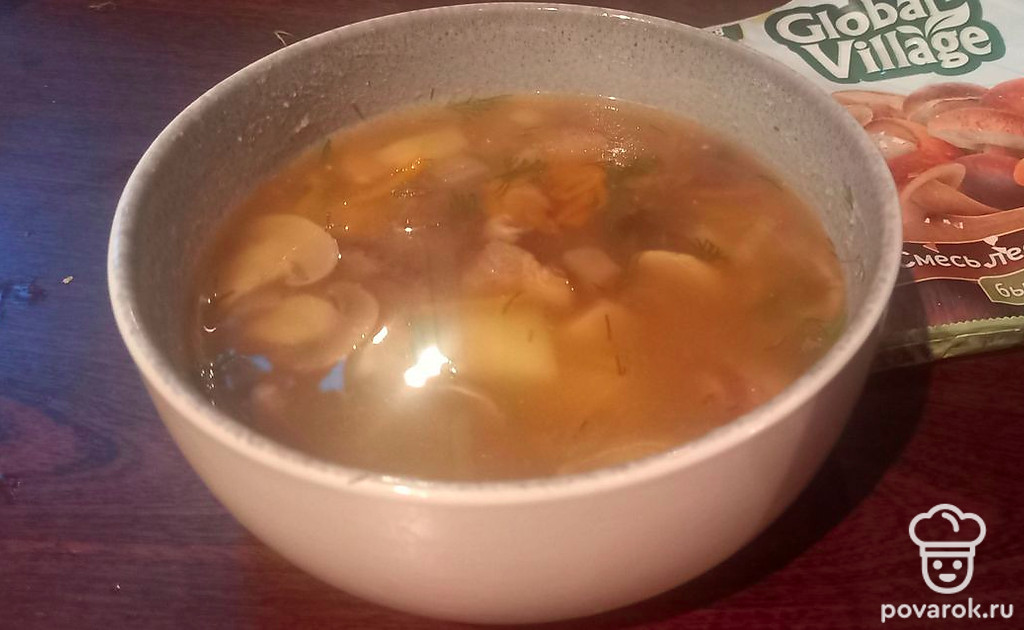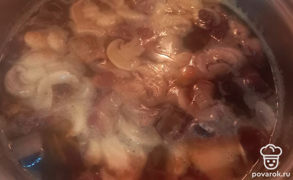Добавьте все в кастрюлю с картофелем. Варите до готовности картофеля (15 минут). Посолите.