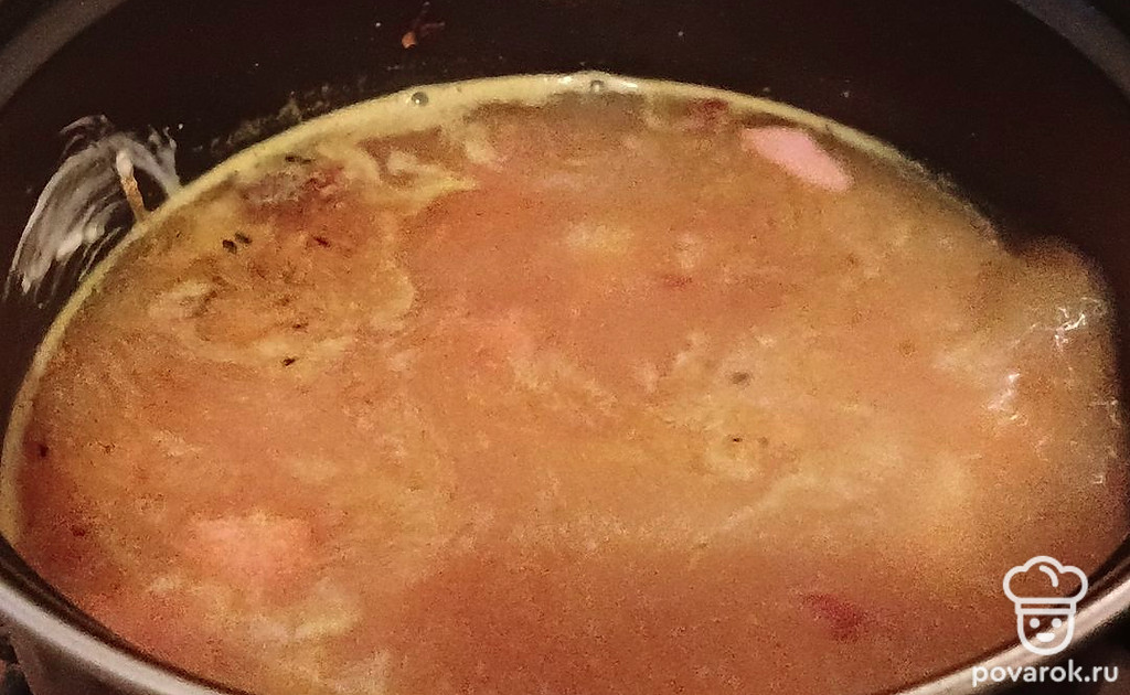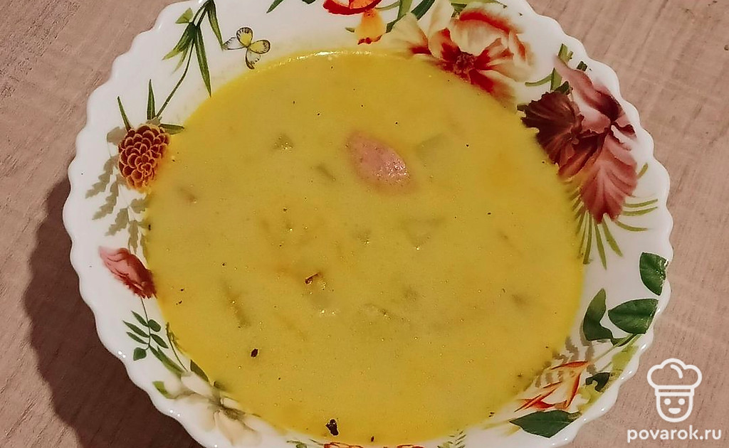 Когда картофель и макароны будут готовы, добавьте зажарку и плавленый сыр. Томите 5 минут. Суп готов!