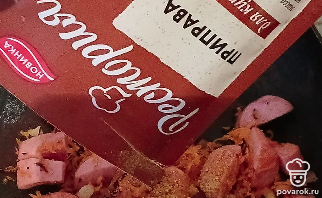 Поставьте вариться картофель с макаронами. Обжарьте 5 минут сосиски с приправой.