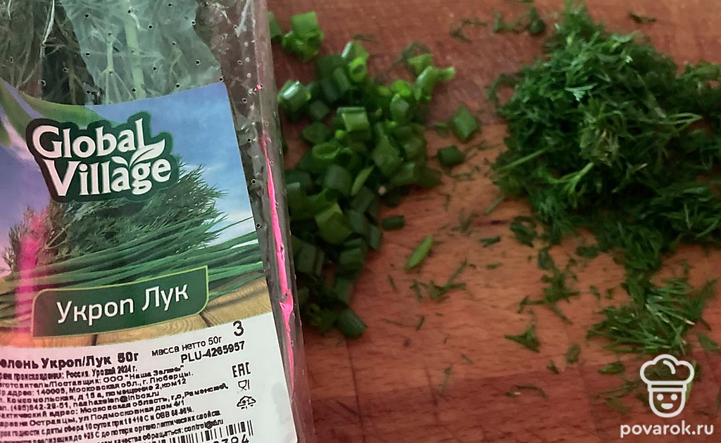 Измельчите зеленый лук и укроп. Добавьте айран и соль по вкусу.