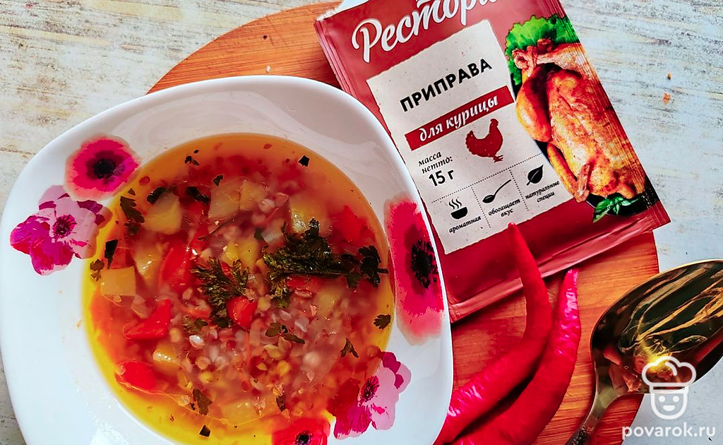 Гречневый суп на курином бульоне с ароматной приправой