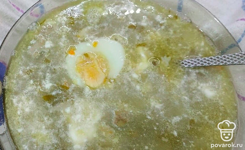 Обратно кладем мясо в кастрюлю и добавляем туда консервированный щавель.