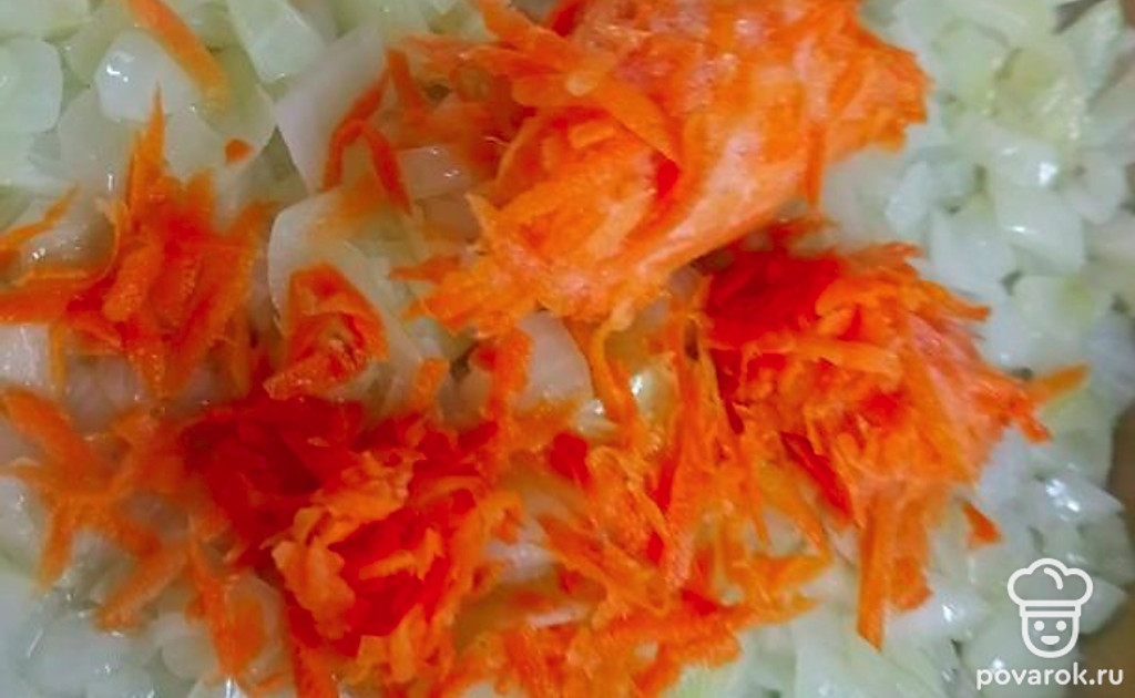 Выкладываем в кастрюлю обжаренные лук и морковь.