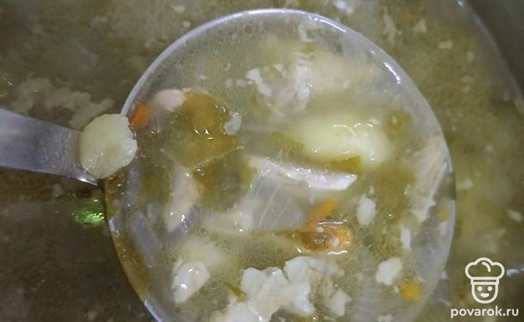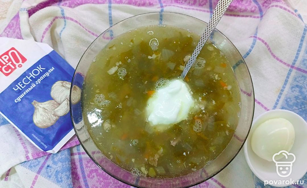 Суп наливаем в тарелку и посыпаем сушеным чесноком. С ним суп получается ароматным и сытным.