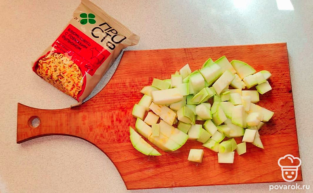 Кабачок берите молодой, чтобы не срезать с него кожуру.