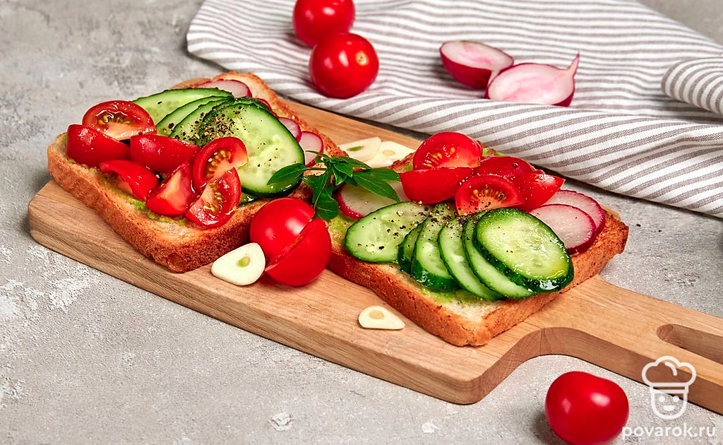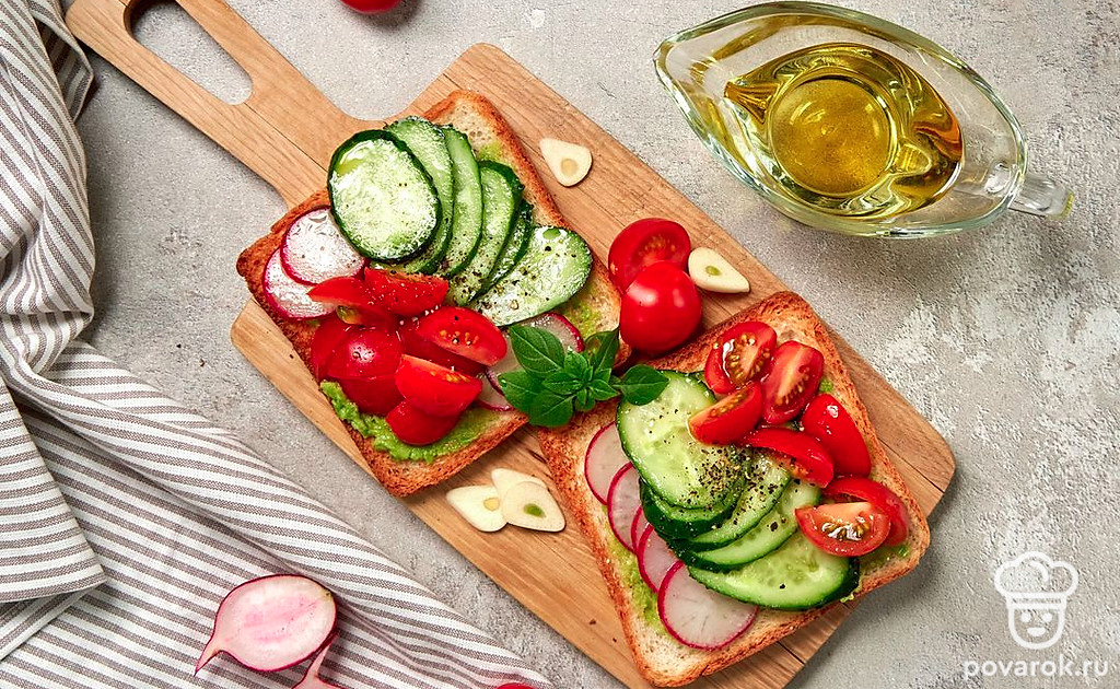 Тост с маслом авокадо — это вкусная и при этом диетическая закуска, которая прекрасно подходит для правильного питания. В основу блюда входят свежие овощи и мякоть авокадо, а в качестве заправки используется масло авокадо, благодаря которому закуска получается еще более вкусной и питательной. Если хочется разнообразить закуску, попробуйте использовать в приготовлении другие овощи, дополняя их лимонным соком и кунжутом.
