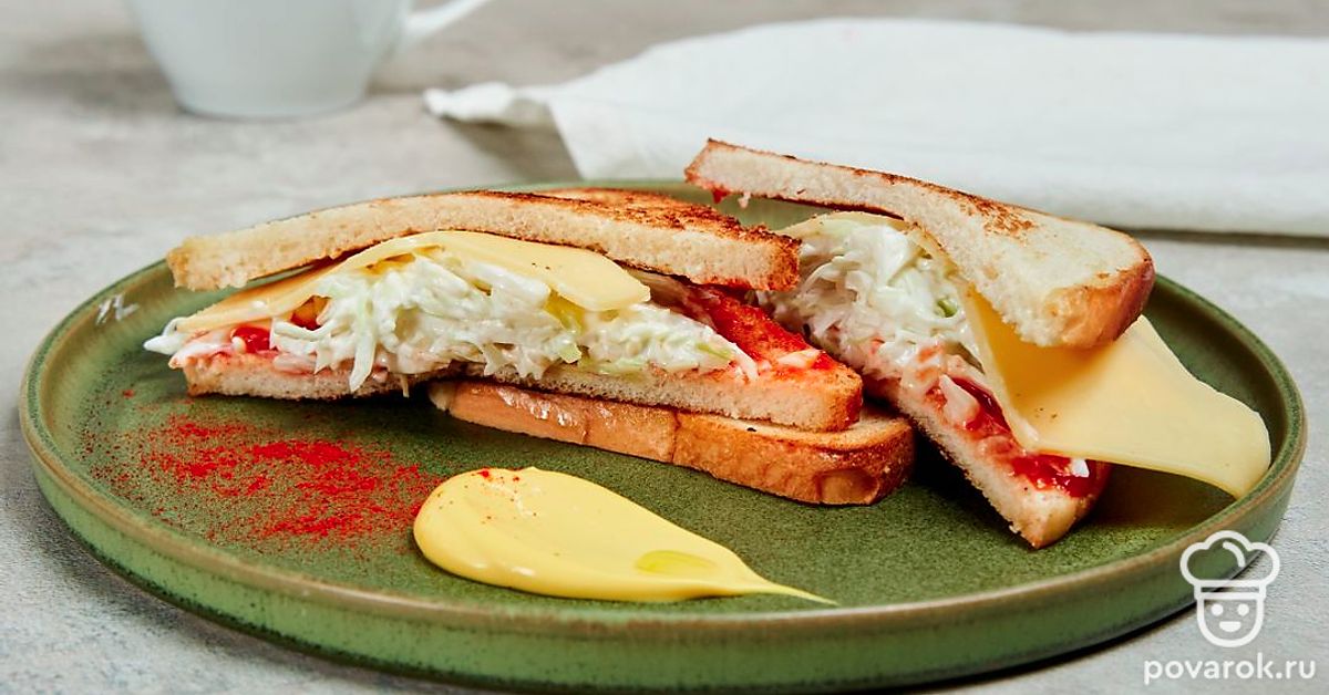 Тосты с капустой — это просто, быстро, сочно и полезно. Абсолютно все виды этого овоща ценятся за высокое содержание полезных веществ и витаминов, необходимых для поддержания здоровья человека. В качестве начинки для тостов идеально подойдет белокочанная. Она богата витамином С, который сохраняется во время хранения. Для заправки в рецепте используется майонез, чтобы блюдо получилось более полезным, можно заменить его натуральным йогуртом.