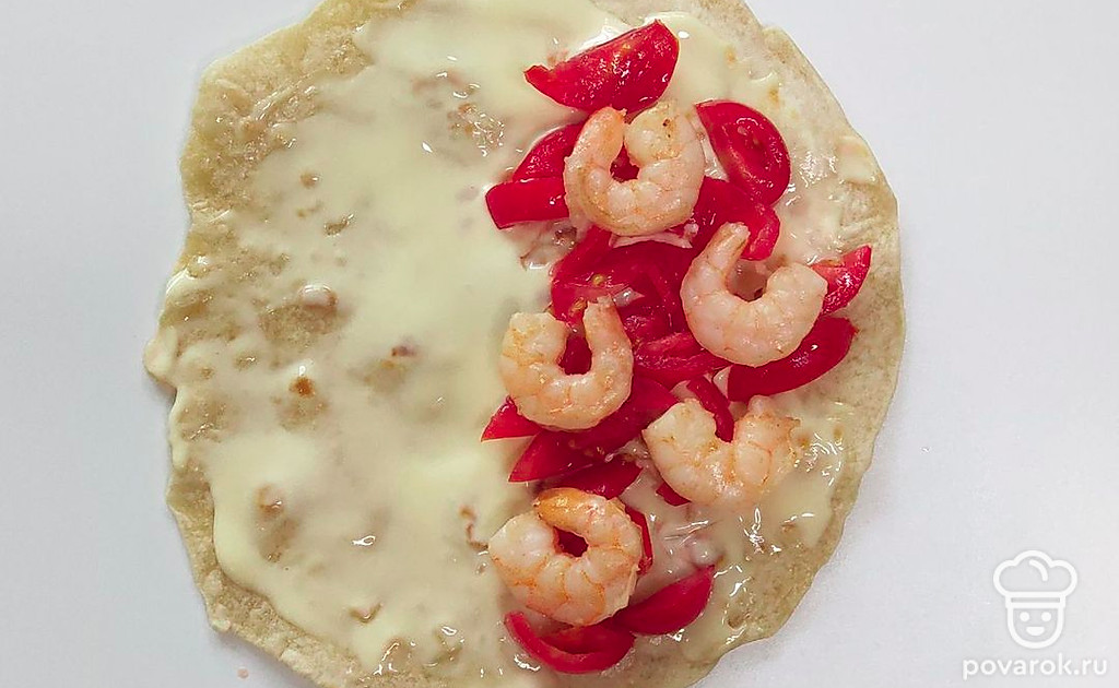 Слегка изменив ингредиенты классической тортильи, можно получить довольно необычное и вкусное блюдо, которое определенно понравится всем гостям. Традиционное сочетание мясной начинки и лепешки из кукурузной муки уже давно известно всем, но в этом рецепте предлагается заменить использование мяса — креветками. Интересный и вполне гармоничный вкус блюда понравится всем, как гостям, так и домашним.