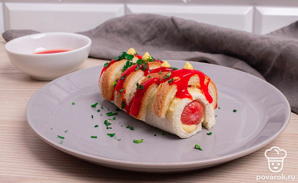 Быстрый и необычный вариант завтрака. Особенно такое блюдо придется пр вкусу детьми, ведь оно имеет очень забавный вид. Рецепт очень напоминает классические хот-доги, только готовится он в несколько раз быстрее из ингредиентов, которые всегда есть под рукой. Блюдо лучше подавать горячим, приятное сочетание копченой сосиски и расплавленного сыра никого не оставит равнодушным.