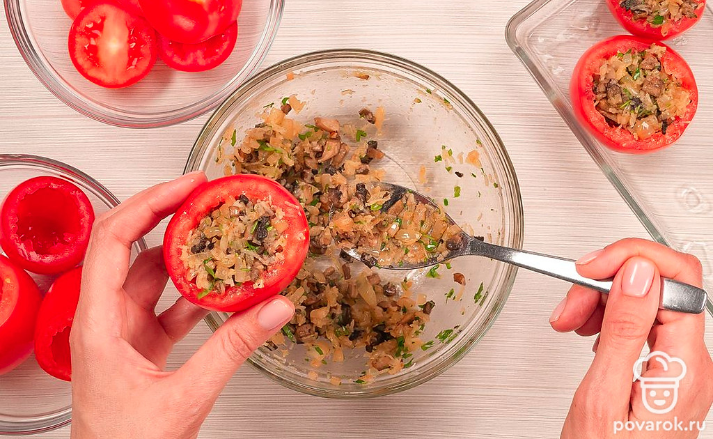 Если банальные гарниры из макарон или картофеля уже приелись и в летнюю жару хочется чего-то более легкого, включите в свой ежедневный рацион закуски из овощей. Один из самых популярных овощей для приготовления закусок — это, конечно, помидоры. Их можно не только нарезать в салат, но и нафаршировать любимыми ингредиентами: ветчиной, шампиньонами, сыром и зеленью. Помидоры, фаршированные грибами, можно подать к столу к любому мясному или рыбному блюду или просто оставить на перекус.