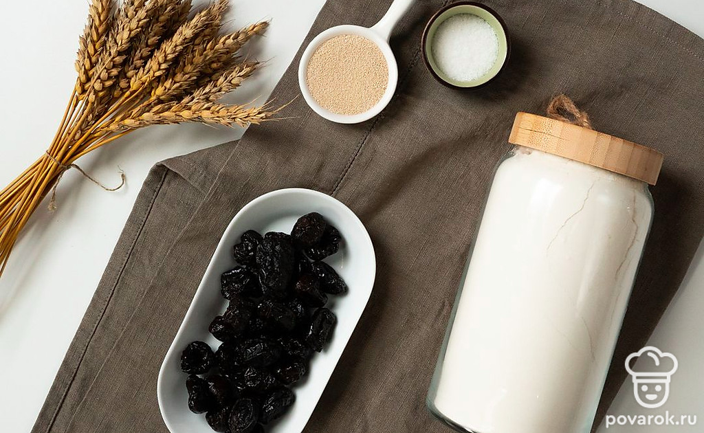 Подготовьте продукты для багета с черносливом. Чернослив тщательно помойте и обсушите. Воду охладите. Совет: Часто сухофрукты обрабатывают сернистым газом для длительного хранения и блестящего вида. Чтобы избавиться от него, замочите чернослив в холодной воде с добавлением нескольких капель столового уксуса.