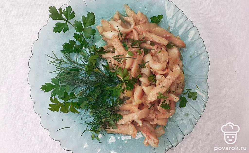 Тушку кальмара предварительно залейте кипятком на 1 минуту, так очистить их станет легче и быстрее.