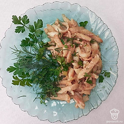 Чтобы сделать блюдо полезнее вместо соли можно использовать лимонный сок, а также уменьшить количество масла, если покрытие сковороды позволяет это сделать.