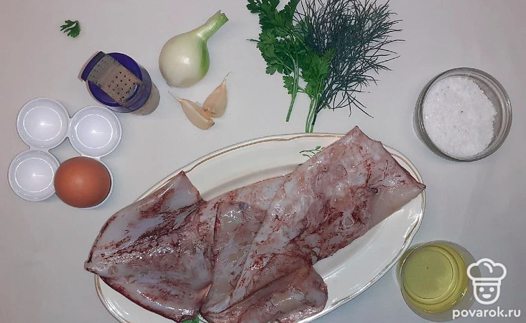Тушки кальмаров тщательно промыть, очистить от внутренностей и пленок. Лук очистить и нарезать тонкими полукольцами. Чеснок очистить и измельчить.