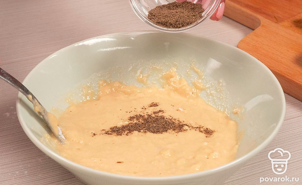 Приготовьте кляр. В отдельной миске взбейте яйцо с пивом, добавьте муку и черный перец, тщательно перемешайте. Консистенция кляра должна получиться однородной, сметанообразной.