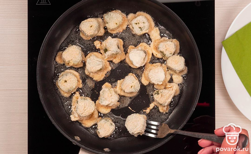 Хорошо разогрейте глубокую сковороду с маслом. Подготовьте блюдо или большую тарелку для подачи закуски.