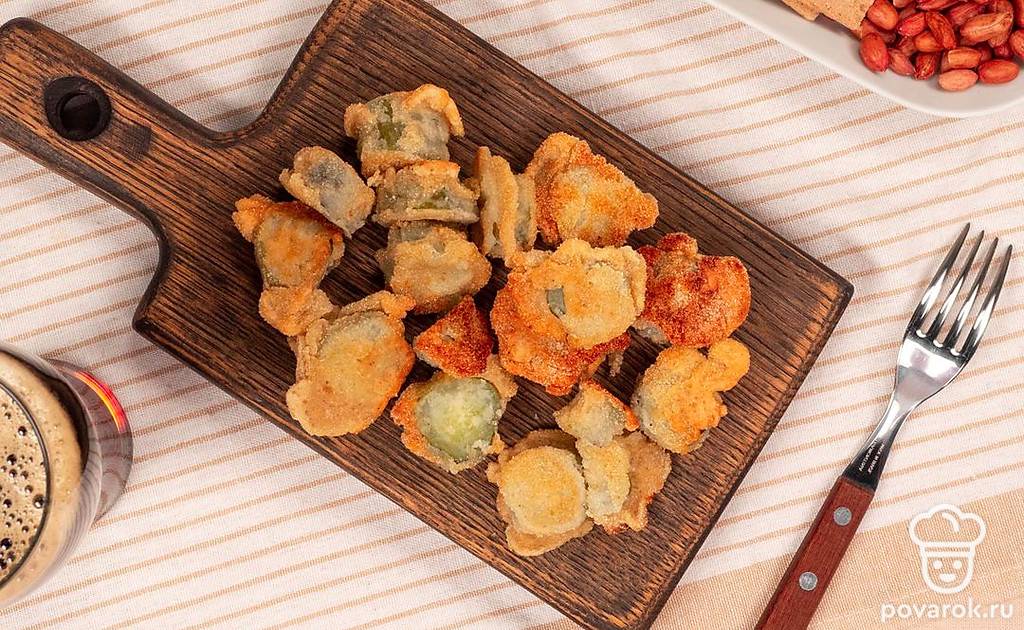 Чтобы сделать соленые огурцы в кляре полезнее, вместо пива добавьте в кляр воду.