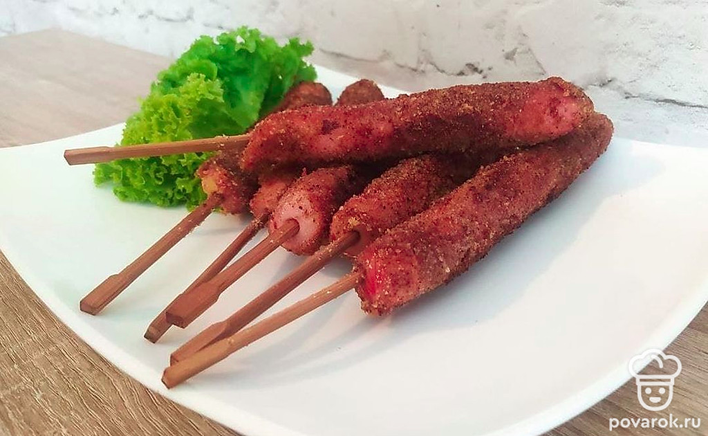 Обжаривайте хот доги на оливковом масле. Кукурузную муку используйте мелкого помола.