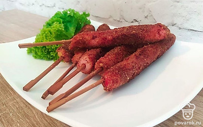 Подавайте хот доги на деревянных шпажках. Предоставьте гостям соусы (сырно-чесночный, сметанный, кетчуп или майонез).