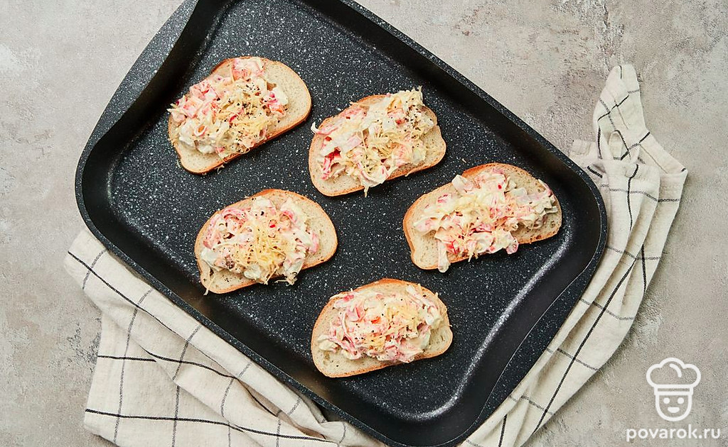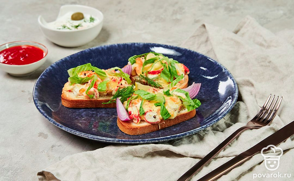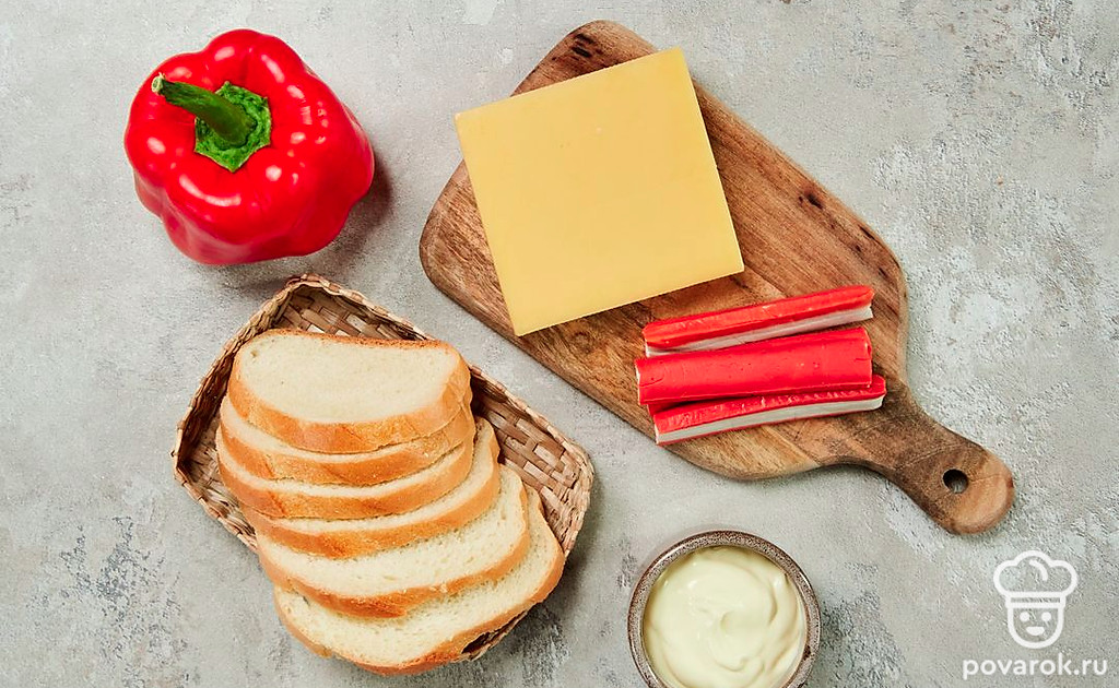 Запеченные тосты — отличный вариант легкого завтрака или закуски для праздничного стола. В состав начинки тоста входит сочный болгарский перец, который придает ему легкий сладкий вкус. Его нежно дополняют солеными нотками крабовые палочки и тертый сыр. Оригинальное сочетание ингредиентов создаст интересный вкус и точно всех удивит.