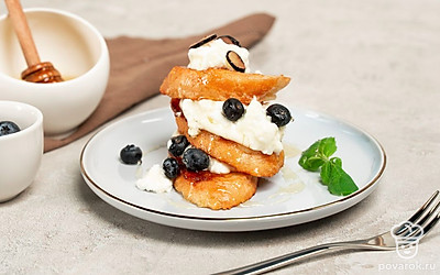 В меру сладкие, ароматные, с хрустящей карамелизованной корочкой и нежные внутри тосты с медом понравятся и детям, и взрослым. Подавайте тосты с вареньем, с рикоттой и ягодами, с фруктами, с шариком мороженого, арахисовой или шоколадной пастой. Приготовить тост можно из любого хлеба — и из свежеиспеченного, и даже из немного зачерствевшего. Важно помнить одно: чем свежее хлеб, тем быстрее он впитывает жидкость. Значит, вчерашний хлеб придется подержать подольше в яичной смеси.