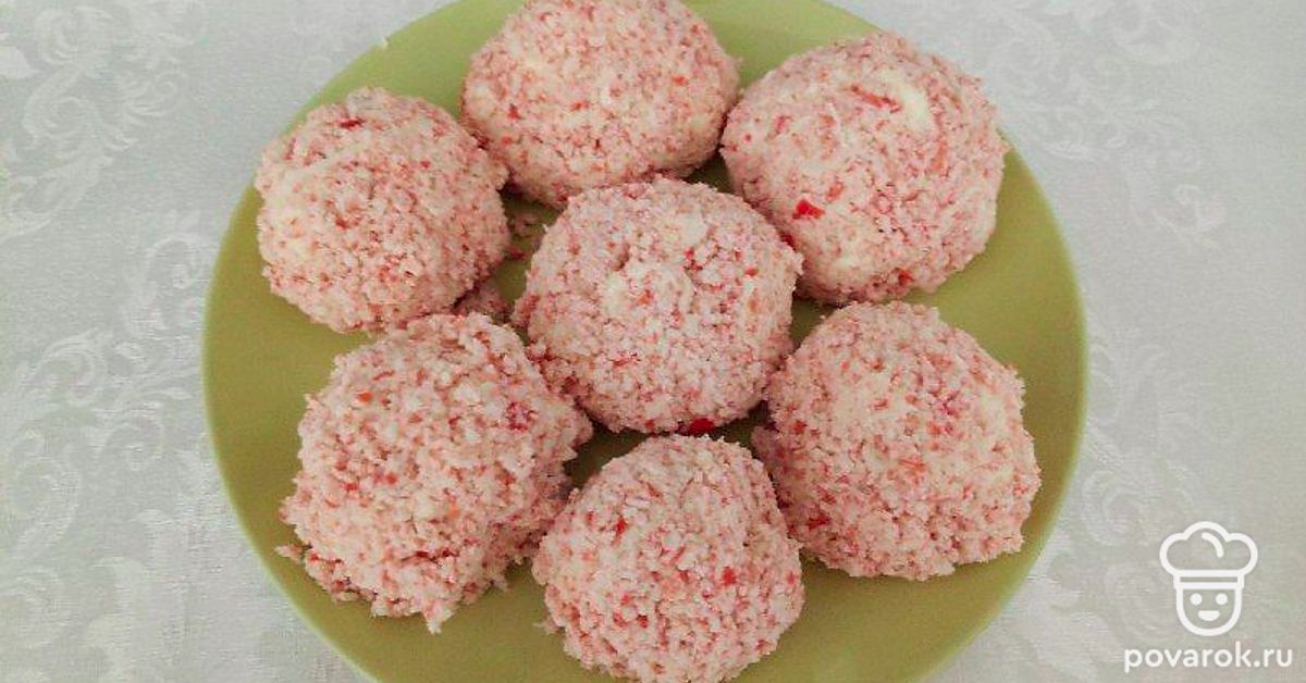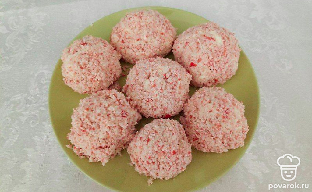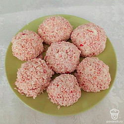 Быструю закуску с хорошими вкусовыми качествами и нежной текстурой можно приготовить, используя плавленые сырки, крабовые палочки, чеснок. Шарики из этих продуктов и, действительно, напоминают конфеты под одноименным названием. Даже сам приятный мраморный окрас вызывает аппетит. Такая закуска украсит любой стол, к тому же, она совсем недорого обойдется.
