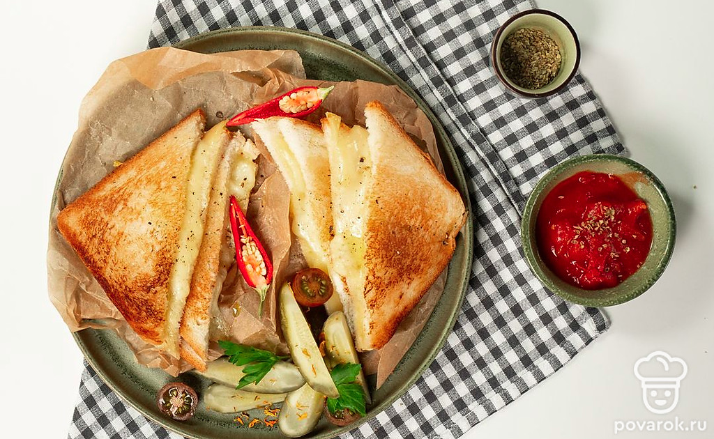 Тост — несложная закуска, приготовленная на основе поджаренного хлеба и начинки. Содержимое блюда может быть разнообразным, начиная нежным мясом и заканчивая сладкими ягодами. Бутерброд со сливочно-сырной начинкой — один из самых быстрых рецептов тоста, приготовление займет не более 10 минут. Чтобы снизить калорийность тоста, замените обычный сыр на рикотту. При выборе сливочного масла убедитесь, что на упаковке есть надпись СТР — «соответствие техническому регламенту». В составе качественного продукта только цельное молоко и сливки, иногда соль.