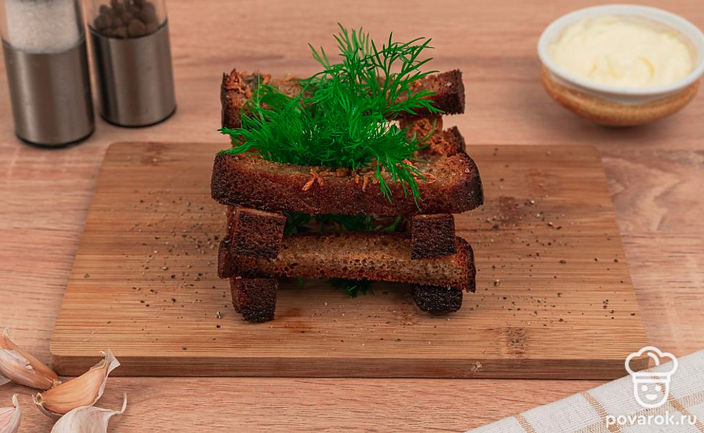 Горячие хрустящие гренки из черного хлеба с чесноком отлично подойдут в качестве закуске к пиву. Подайте их на вечеринке или съешьте за просмотром фильма.